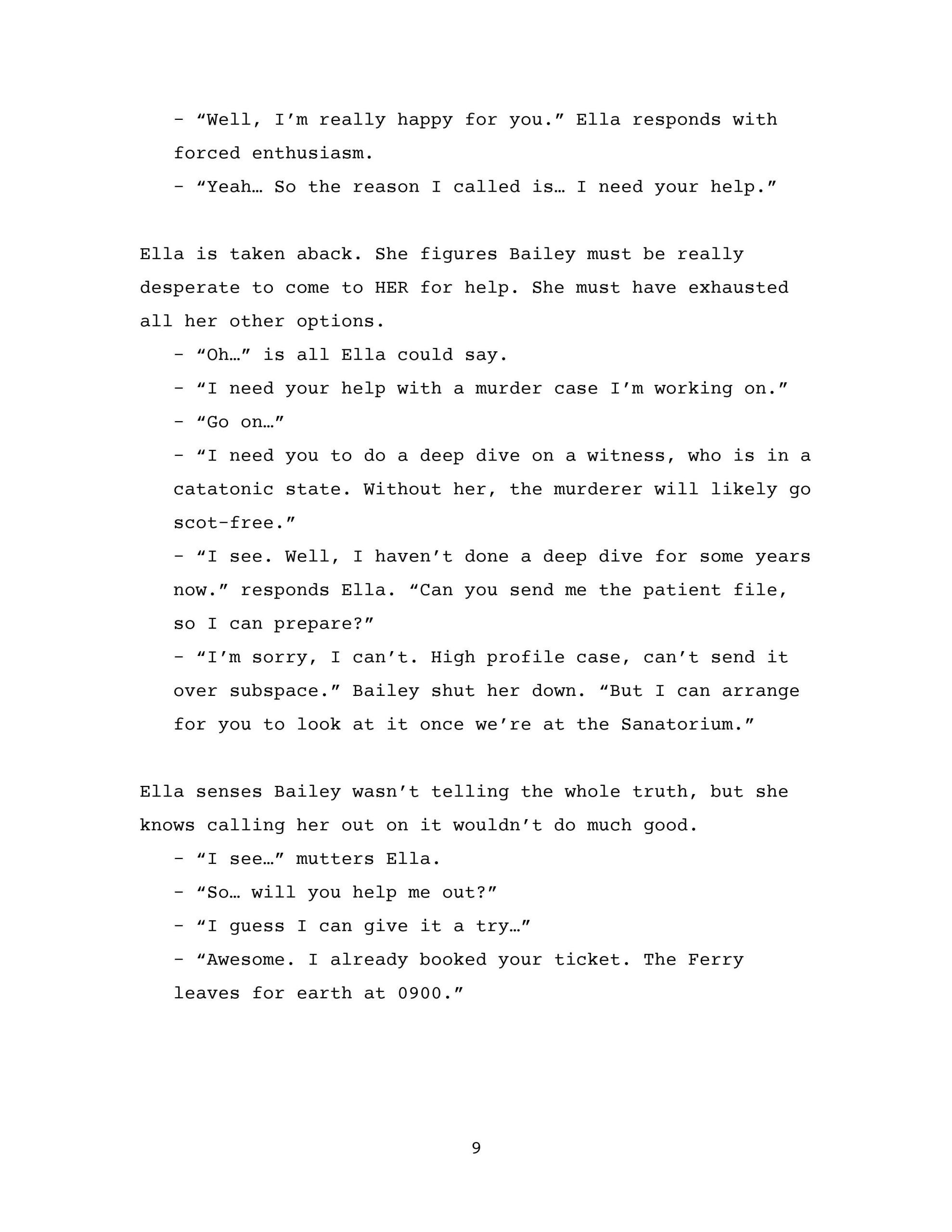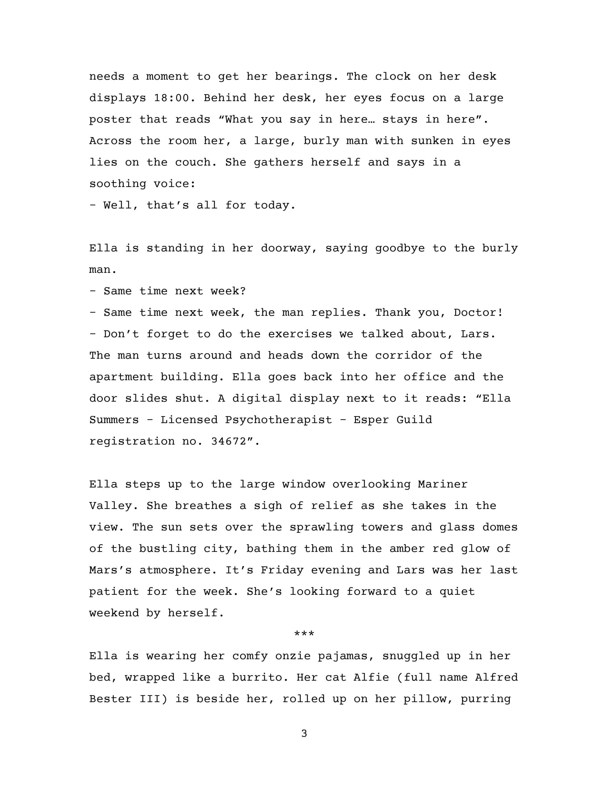 After reading up on some behind-the-scenes trivia, I learned the character was named after a sci-fi author from the ‘50s, best remembered for his novel “The Demolished Man”, which popularized several tropes related to telepaths that are still used in sci-fi to this day. I decided to give it a chance, and after the first few pages, I was hooked. Besides the usual 1950s camp that is to be expected, it actually dealt with some interesting concepts(although outdated by today’s standards) about Freudian psychoanalysis and some interesting typography to illustrate telepathic conversations. It also has sort of a twist ending related to the “Demolition” in the title. I thoroughly enjoyed it and felt inspired to explore how telepathy would work in the “Republic of Sol” universe. And this story is the result. Enjoy!